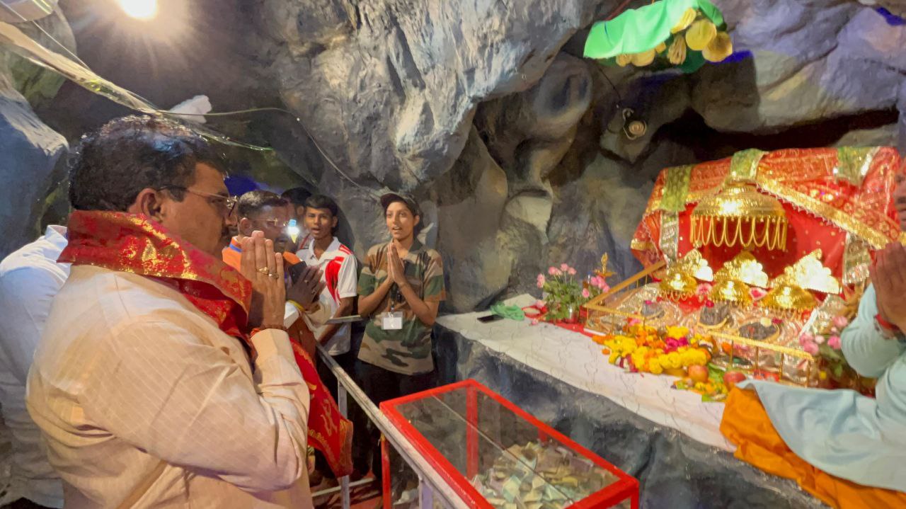 burhanpurlatestnews बुरहानपुर (पॉलिटिकल रिपोर्टर) खंडवा बुरहानपुर क्षेत्र के सांसद ज्ञानेश्वर पाटील मंगलवार को बुरहनपुर जिले के दौरे पर रहे सांसद ज्ञानेश्वर पाटील खामनी गांव में 50 लाख रूपए से अधिक लागत से कश्मीर के कटरा की वैष्णो देवी की तर्ज पर तैयार की गई गुफाओ में पहुंचे और वैष्णो देवी के दर्शन किए सांसद पाटील ने कहा उन्हें ऐसा लगा कि उन्होने साक्षात मां वैष्णोदेवी के दर्शन किए हो सांसद पाटील ने कहा ग्राम खामनी तथा आस-पास के सभी गाँवों के निवासीयो ने भव्य मां वैष्णो देवी धाम में माता रानी की घट स्थापना के साथ मां वैष्णोदेवी कटरा की प्रतिकृति को आकार देकर एक अद्वितीय उदाहरण दिया है। गांव वालों की यह अद्भुत भक्ति भाव और उनका समर्पण आपसी भाईचारे, सहयोग और दृढ़ संकल्प की एक मिसाल है।