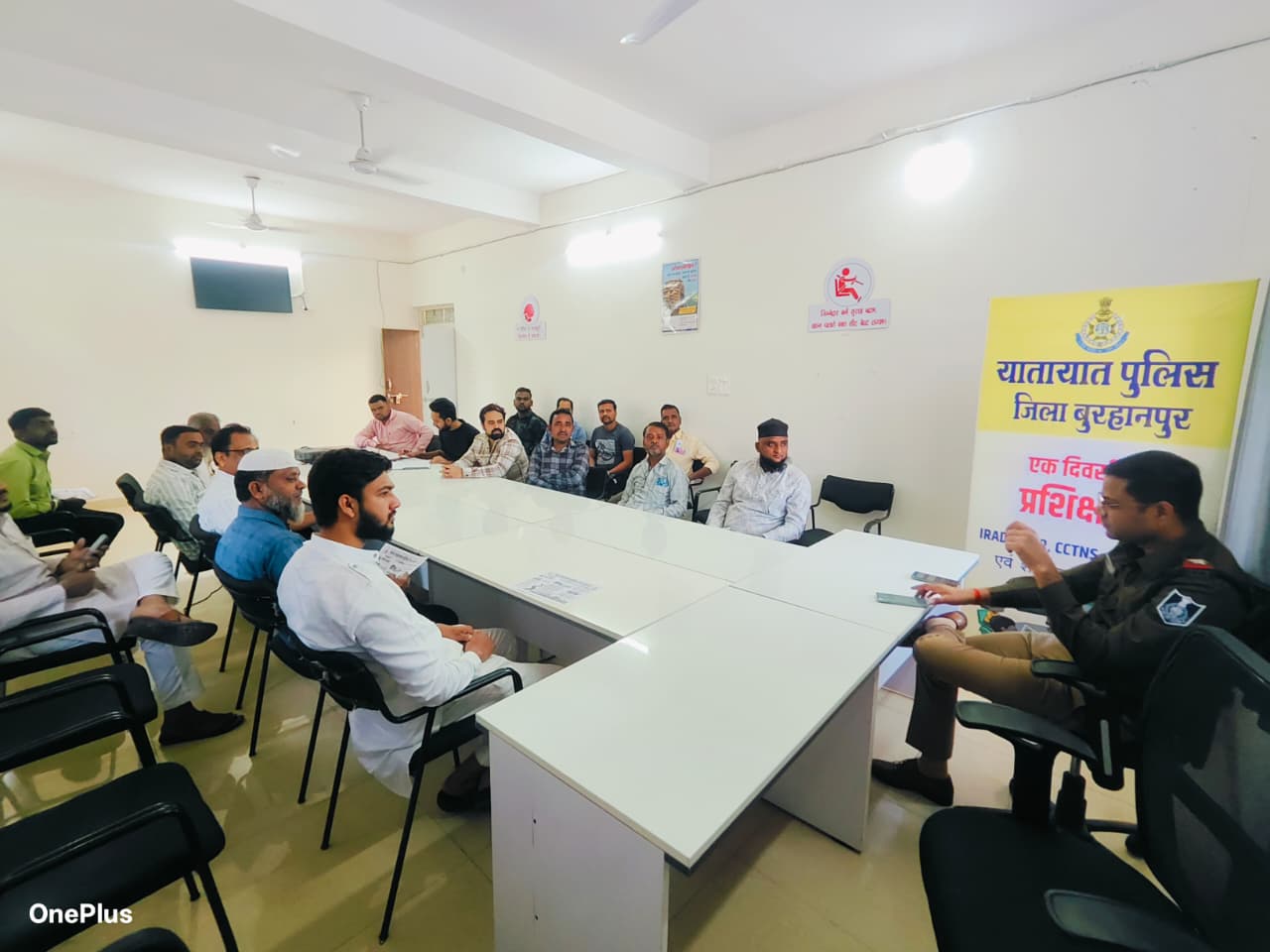 mppoliceपुलिस अधीक्षक श्री बुरहानपुर श्री देवेंद्र पाटीदार, अतिरिक्त पुलिस अधीक्षक श्री अंतर सिंह कनेश,एवं नगर पुलिस अधीक्षक श्री गौरव पाटिल के द्वारा शासन की राहवीर योजना,हिट एंड रन स्कीम,कैशलेश उपचार योजना यातायात नियमों एवं सड़क सुरक्षा के संबंध में अधिक से अधिक प्रचार प्रसार करने हेतु निर्देशित किया गया था।